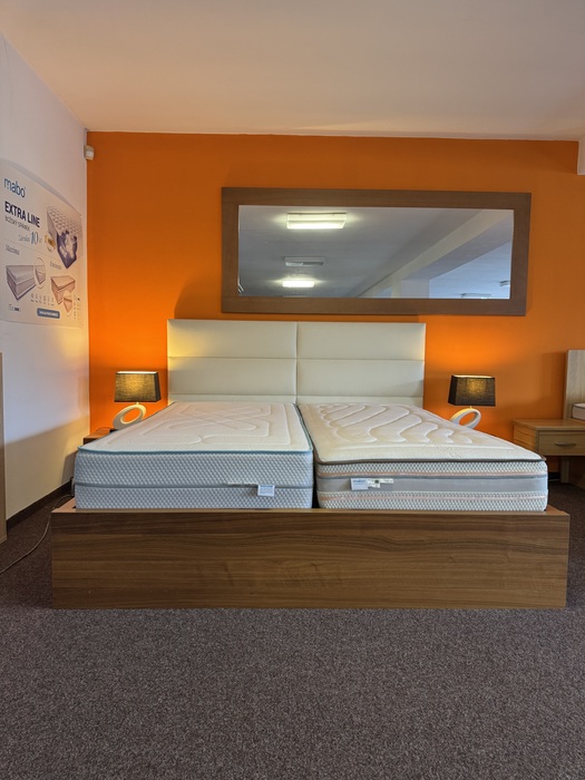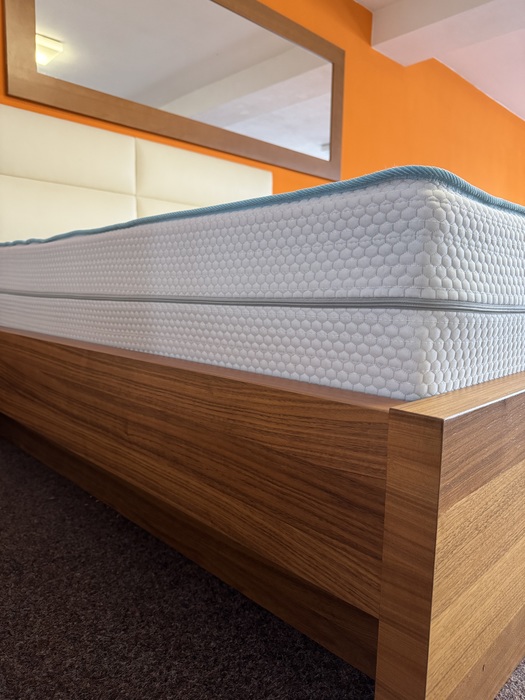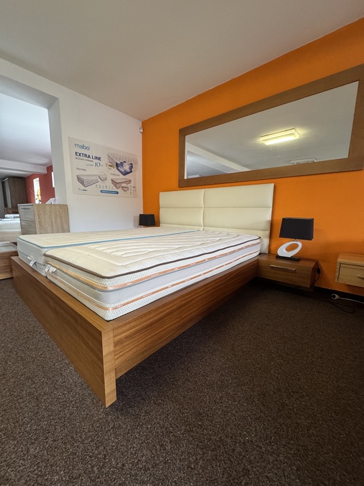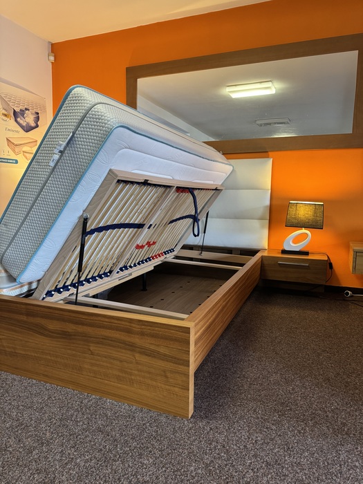 Amelia je designové a praktické dvoulůžko zároveň. Ložná plocha je v rozměru 180x200. Součástí postele jsou i noční stolky. Přístup do úložného prostoru je možné si zvolit z čela nebo z boku díky výklopným roštům dle výběru zákazníka. Vyrobena je z kvalitní pravé ořechové dýhy.