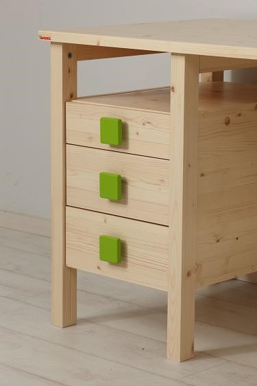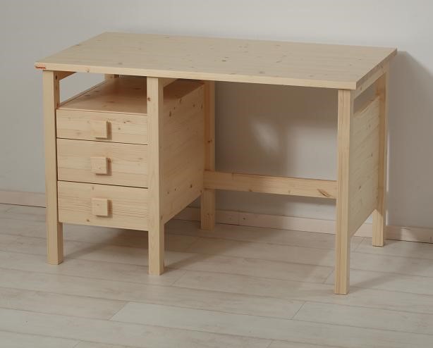 Psací stůl z masivu v novém designu má tři zásuvky a velkou pracovní desku, to je ideální volba do dětského i studentského pokoje.