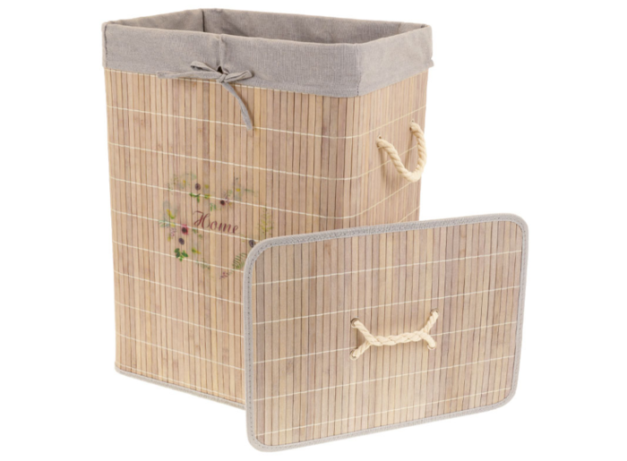 Praktický koš na prádlo z bambusu. Vnitřní část koše je vyplněná látkovým pytlem v kontrastním odstínu. Designový a zároveň velmi praktický doplněk do koupelen.