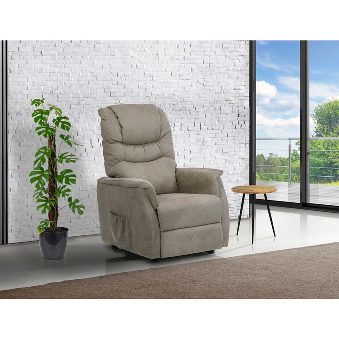 TV a relaxační křeslo s elektrickým ovládáním, potah šedá nebo cappuccino látka, 2 motory 240V/2. Vhodné pro seniory.