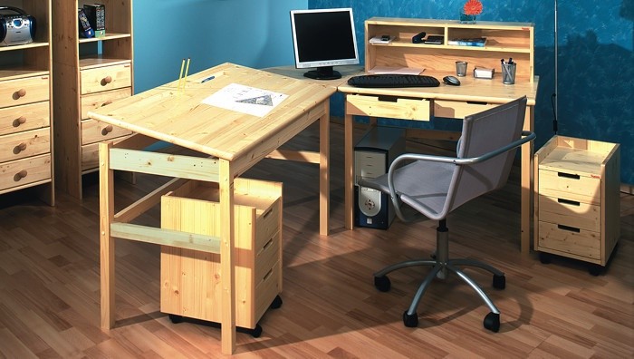 Provedení psacího stolu se zásuvkami, nebo pracovní deskou s plynule naklápěcí mechanikou.