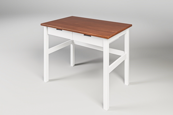 Provedení psacího stolu se dvěma zásuvkami, nebo pracovní deskou s plynule naklápěcí mechanikou.