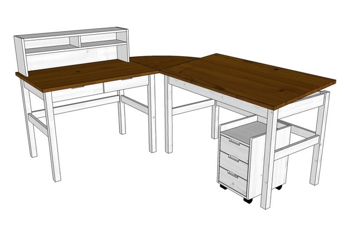 Psací stůl je možné doplnit policí a zásuvkovým kontejnerem.