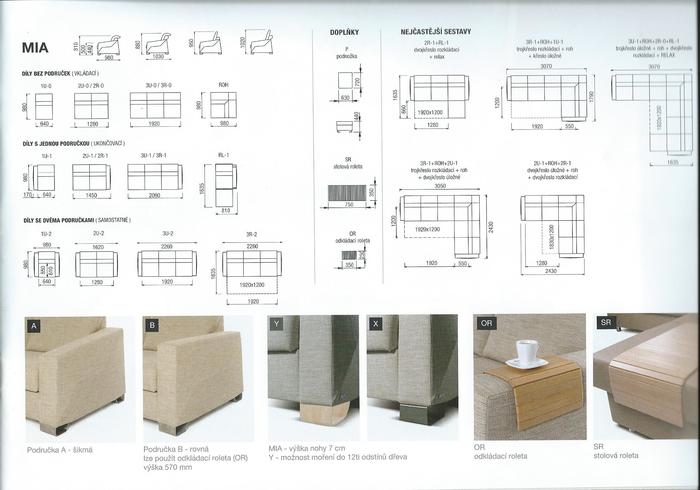 Sedací souprava MIA nadchne svými originálními čistými liniemi, které zapadnou do každého interiéru. Malá nebo velká, do paneláku nebo do reprezentativní vily, všude najde svoje uplatnění. Na pohled jednoduchá a originální, uvnitř navržená pro dokonalý odpočinek. Výškově stavitelné podhlavníky, ideální tuhost výplní a velmi snadné rozkládání z ní činí partnera pro každou příležitost. Na výběr je z mnoha sestav, vybrat si můžete typ bočnice, nohy i čalounění.