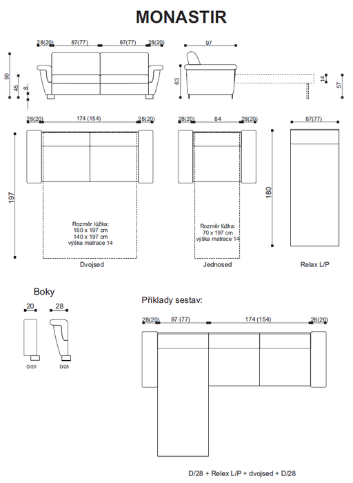 Rozměry a možnosti sestav viz. perokresby níže