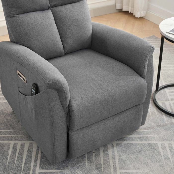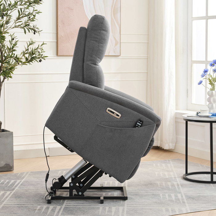Naše elektricky ovládané relaxační křeslo je navrženo s ohledem na vaše pohodlí a zdraví. S funkcemi jako jsou vibrační masáž a vyhřívání, poskytuje úlevu od každodenního stresu a napětí. Integrované ovládání s USB porty je moderním doplňkem, který vám umožní zůstat připojení a nabíjet svá zařízení, aniž byste museli vstávat. Výklopná funkce je skvělá pro seniory nebo osoby s omezenou pohyblivostí, usnadňuje vstávání a zajišťuje bezpečnost.