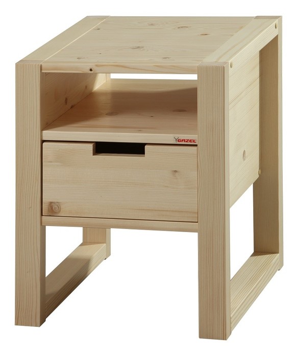 Dřevěný noční stolek v přírodním provedení je vhodným doplňkem k postelím Rhino I. a Rhino II.