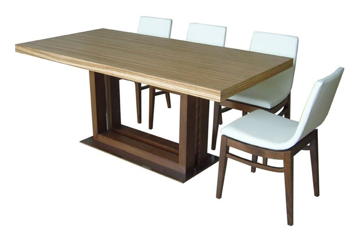 Celodýhovaný jídelní stůl NIKA 2 e zdvojenou centrální nohou, která na rozdíl od klasických stolů při stolování nezavazí. Rozměry - plát tl. 8 cm, šířka 90 cm, délka 140 až 200 cm. Standardně nabízíme podnož a stolový plát v jedné barvě. Barevné kombinace jsou bez příplatku, ale je nutné je specifikovat v objednávce. Velmi zajímavý stůl do moderní domácnosti.
