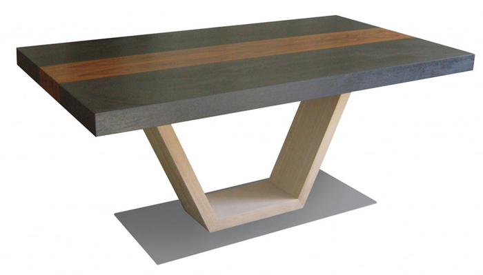 Stůl Venda se sílou plátu 3,8cm nebo 8cm , zde vyobrazen s pruhem alternativní dýhy ve velmi zajímavé kombinaci. Kvalitní, designový stůl, vyrábí se z bukové nebo dubové dýhy a moří se do mnoha barev.